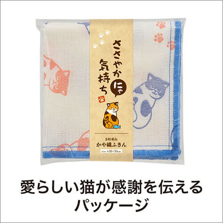 日頃の感謝を伝えるのにぴったりな「ささやかにゃ気持ち」シリーズのかや織ふきんです。