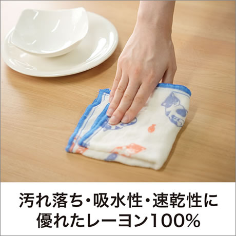 ふきんは汚れ落ち・吸水性・速乾性に優れたレーヨン100%素材。