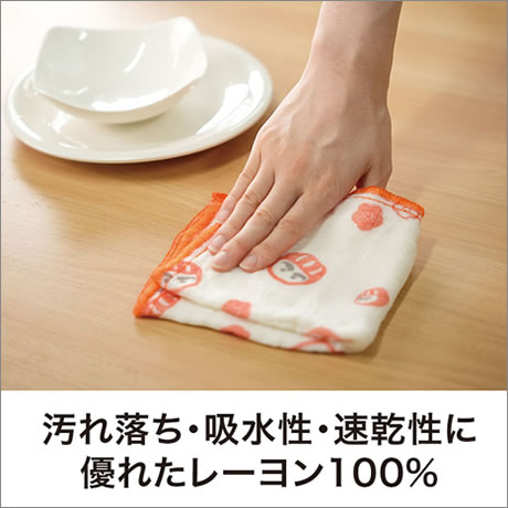 ふきんは汚れ落ち・吸水性・速乾性に優れたレーヨン100%素材。
