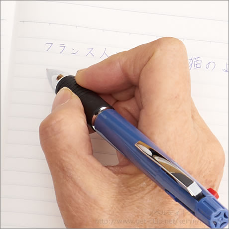 黒、赤、青色の3色ボールペンと、シャープペンが一体となったお役立ちペン。