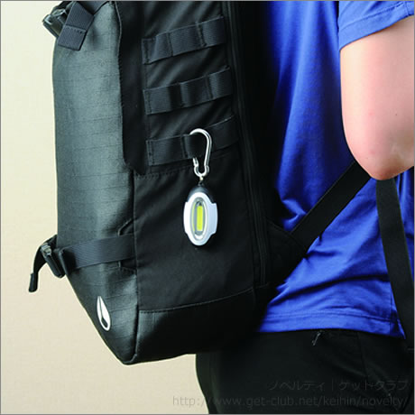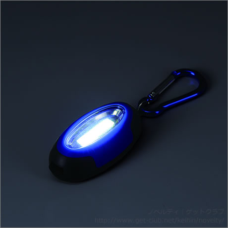 驚きの明るさで照らしてくれるLEDライトキーホルダー。バッグや腰に装着して携帯しやすいカラビナ付きです。ボタンを押す度にライトの照射状態が変わります。