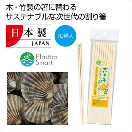 廃棄されるホタテの貝殻を使用したバイオマス素材を主原料としたプラスチックの製造をしています。 この素材は原料の51%以上がホタテの貝殻から製造されたものであり、プラスチックの原料となるポリプロピレンの使用量を大幅に減じた環境に 配慮した素材です。 ホタテの貝殻から製造することで、現プラスチック製品の代替が可能であり、 石油の使用量を減らすことが可能です。
