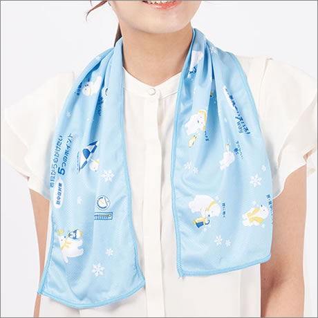 熱中症対策に役立つ、かわいい「しろくまくん」デザインのクールタオルです。