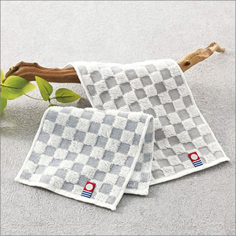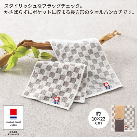 スタイリッシュなフラッグチェック。かさばらずにぽけっとに収まる長方形のタオルハンカチです。