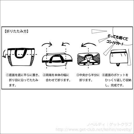 たたんで底面のポケットに小さく収納できます。海外のスーパーのオリジナルショッピングバッグとしても採用されているおしゃれな形状です。 小さくしまって、大きく使お!