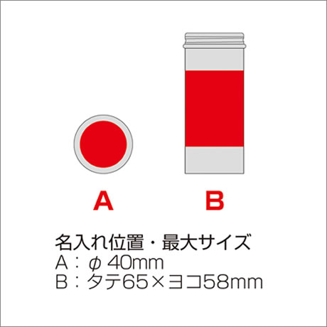 回転シルク印刷 B:タテ65×ヨコ58mmは ※レーザー加工1色 Φ40mm は別途御見積