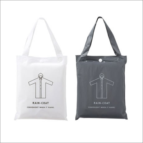 雨天時に役に立つ、収納バッグ付の男女兼用レインコートです。
