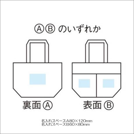 シルク印刷1色1か所 名入れスペースA80×120mm、名入れスペースB 60×80mm いずれか1か所指定