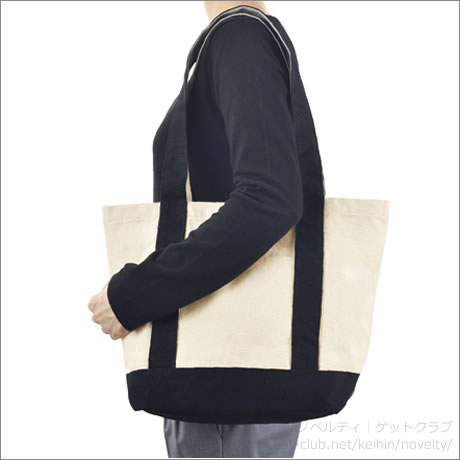 色の切り替えしがアクセントになるバイカラートート。使い勝手のよい大き目サイズは、普段使いにぴったり。広めのマチは、多めの荷物を入れても安心。