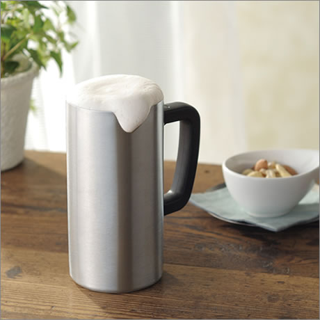 キンキンに冷えたビールをグイッといきたくなる、たっぷりサイズのジョッキです。冷たさも美味しさも持続!結露しない真空ステンレス製