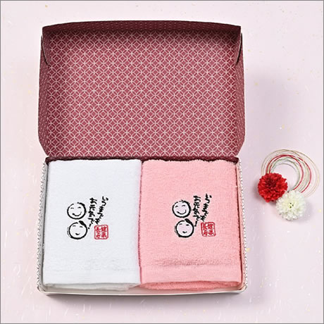 「健康長寿」刺しゅう入ギフトフェイスタオル2枚セット -
