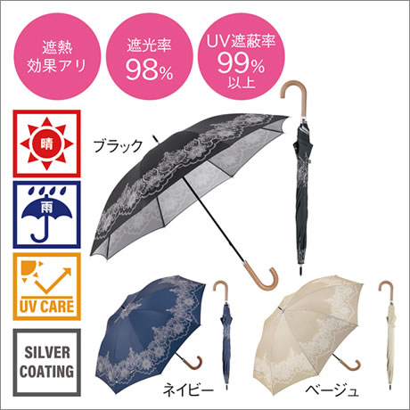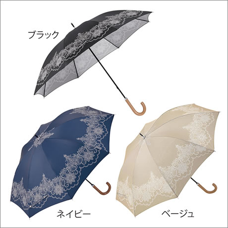 上品なカラーとレース柄の組み合わせがとってもゴージャスな、エレガントな気分へと誘う、大人のためのおしゃれ傘。