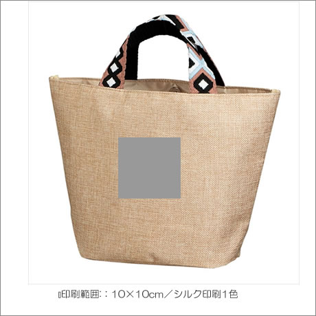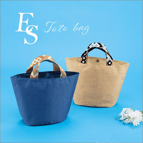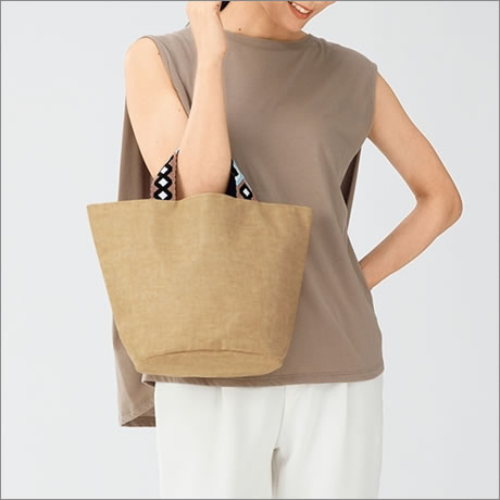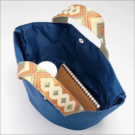 エスニック柄の持ち手がアクセントの雑材風トート。