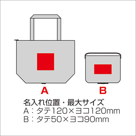 シルク印刷1色 A:タテ120×ヨコ120mmまたは B:タテ50×ヨコ90mm