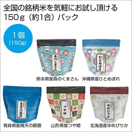 全国の銘柄米を気軽にお試し頂けるように150g(約1合)パックにしました。