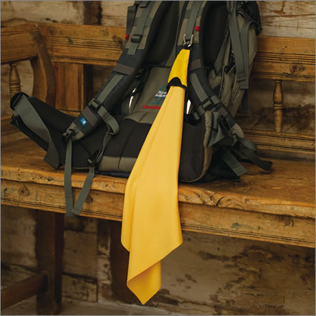 手のひらサイズにたためる吸水性バツグンの高機能タオル。