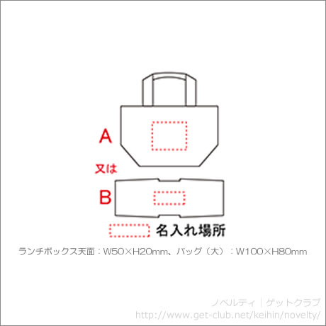 名入れ:シルク印刷バッグ80×100mm以内または、パッド印刷ランチボックス20×50mm以内 |