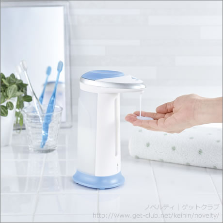手をかざすだけで、自動で液体ソープが出る衛生的なディスペンサー。