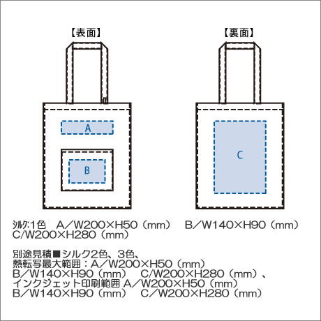 シルク:1色 A/W200×H50(mm) B/W140×H90(mm) C/W200×H280(mm)