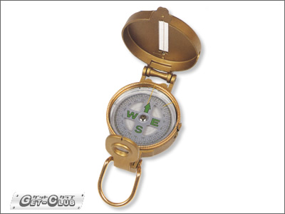 レンズ上部のスリットから覗き、フタの照準線と目標物が重なるように方角を合わせ、