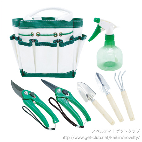 内容:移植ごて、すき、くまで、剪定ばさみ、摘み果ばさみ、スプレー各1個