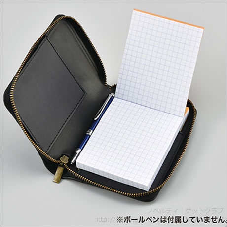備考 梱包:箱入132×105×25mm 素材:牛革・紙 ロディアメモパッド付 YKKファスナー使用