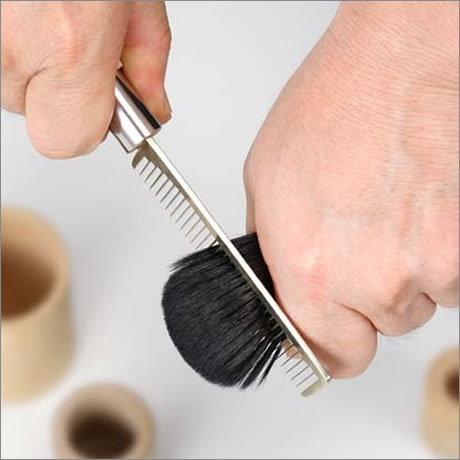 世界に誇る熊野の化粧筆。筆司の手作り極上品質化粧筆。穂先をカットしない熊野の化粧筆は、穂先がやわらかくやさしいので肌触りが違います。メイクのノリや持ちも断然違う「本物」の逸品です。