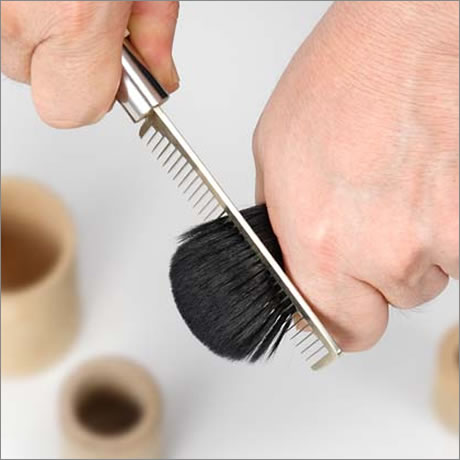 世界に誇る熊野の化粧筆。筆司の手作り極上品質化粧筆。穂先をカットしない熊野の化粧筆は、穂先がやわらかくやさしいので肌触りが違います。メイクのノリや持ちも断然違う「本物」の逸品です。