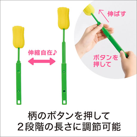 最長で約35cmまで伸びるため、細長い、深いコップ・ボトル類も底までしっかり洗浄できます♪