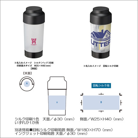 別途見積■回転シルク印刷範囲 側面/W180×H70(mm)、インクジェット印刷範囲 天面/φ30(mm) |