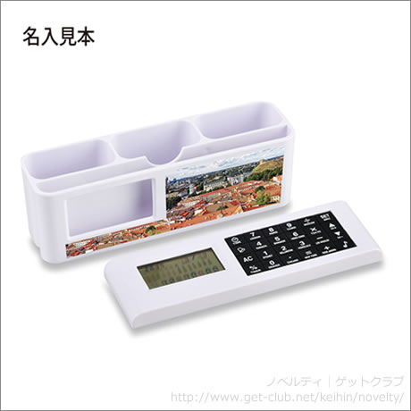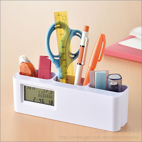 電卓・ペンスタンド・時計などデスクにあるとうれしいアイテムが一体に。