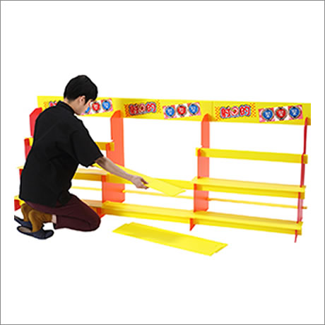 プラスチックダンボールだから、軽くて組み立ても簡単。ぺったんとくっつけるか、弾き飛ばすスナイパーで狙った品物をゲット!