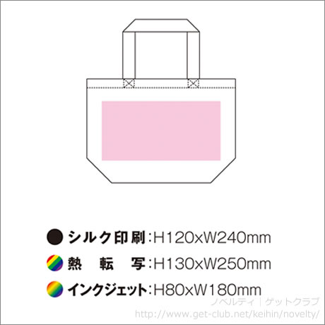 備考 | 刷り範囲:H120×W240mmシルク印刷 片面1色 ※フルカラー転写やインクジェット印刷はデータ確認が必要です |