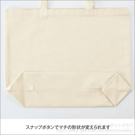 ボタンアレンジでマチなし、マチありで使える2スタイル。用途に合わせて便利に使い分けできるアイデアバッグです。