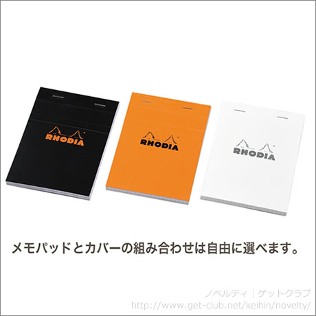 ロディアのメモパッドを3色から選べます(黒、オレンジ、白)。