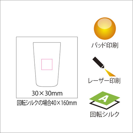 ※パッド印刷1色30×30mm、回転シルク1色40×160mmは別途御見積、箱へ箔印刷も承れます。要ご相談