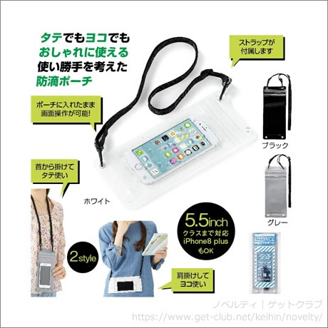 ホーム > ノベルティ >  スマホ・モバイル・PC関連  >  2スタイル防滴スマホポーチ ※完売