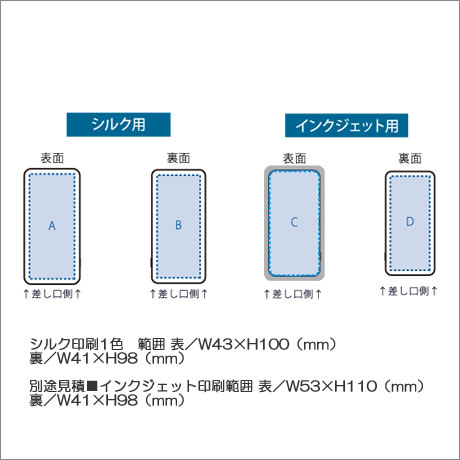 別途見積■インクジェット印刷範囲 表/W53×H110(mm) 裏/W41×H98(mm)