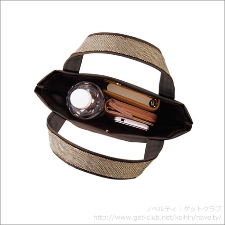 斜めに配置されたハンドルがスタイリッシュなミニトート。 暖かみのあるツイード生地が季節感を演出します。