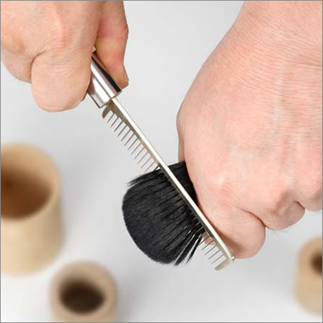世界に誇る熊野の化粧筆。筆司の手作り極上品質化粧筆。穂先をカットしない熊野の化粧筆は、穂先がやわらかくやさしいので肌触りが違います。メイクのノリや持ちも断然違う「本物」の逸品です。