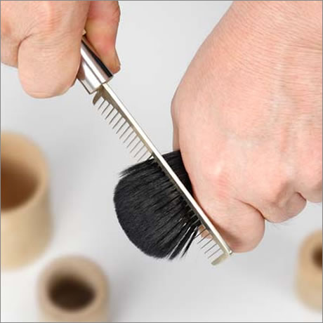 世界に誇る熊野の化粧筆。筆司の手作り極上品質化粧筆。穂先をカットしない熊野の化粧筆は、穂先がやわらかくやさしいので肌触りが違います。メイクのノリや持ちも断然違う「本物」の逸品です。