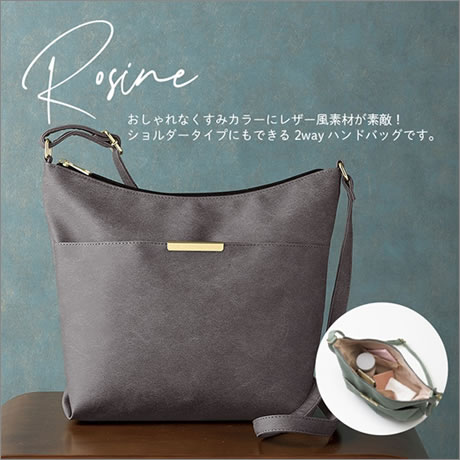 おしゃれなくすみカラーにレザー風素材が素敵!ショルダータイプにもできる2WAYハンドバッグです。