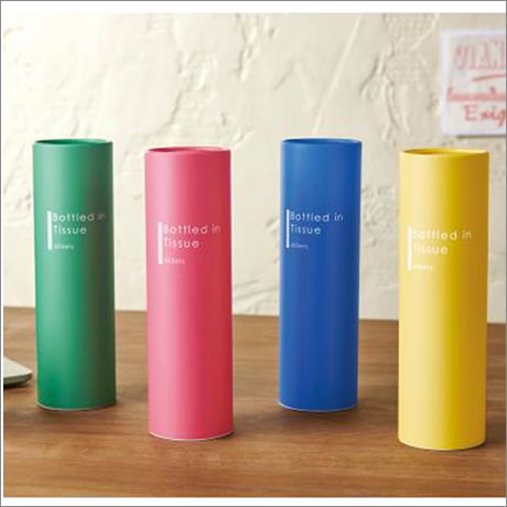 ボックス型よりも場所を取らず、すっきり設置できる円柱型のボトルティッシュケース。