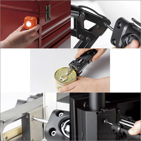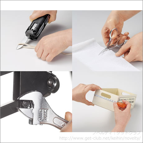 缶・キャップオープナー、ナイフ、コンパクトはさみ、モンキーレンチ、自動巻メジャー