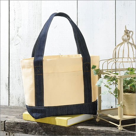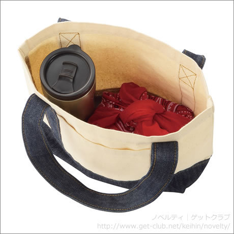 ランチボックスはもちろん、タンブラーもらくらく入れられます。コットン×デニムがナチュラル。