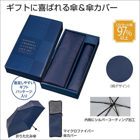 ベーシックな折りたたみ傘と人気の傘カバーのギフトセット です。