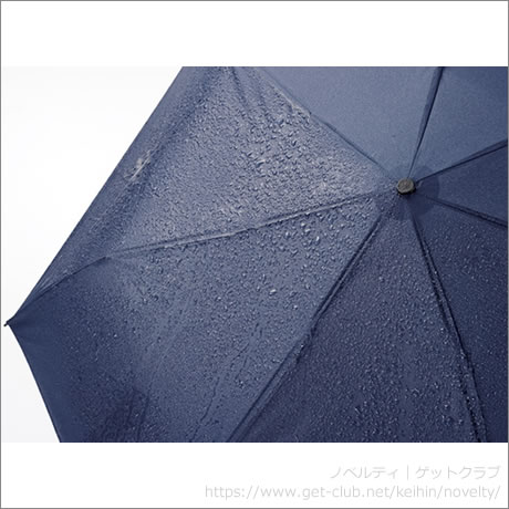 突然のゲリラ豪雨や台風の横風にも強い耐風構造。耐風試験風速15mにも合格。雨水をはじく高はっ水加工を施しました。