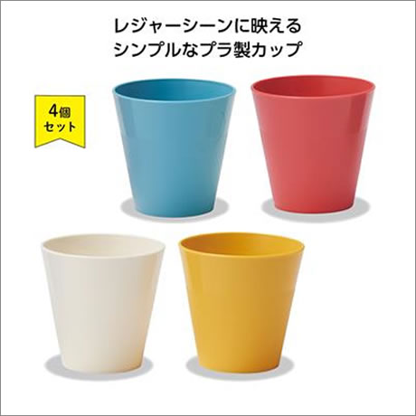 レジャーやお子様のパーティーなどでも使い勝手のいい、シンプルなプラ製カップ。