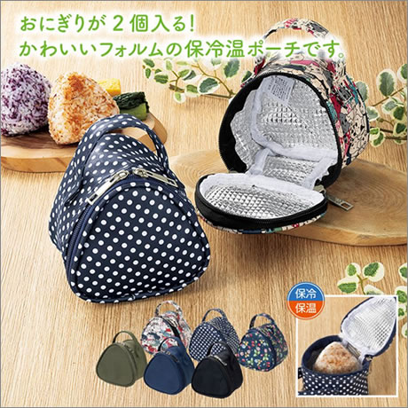 おにぎりが2 個入るかわいいフォルムの保冷温ポーチです。