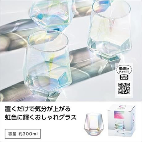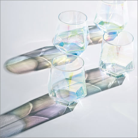 飲み物やデザートカップに使えるグラスは、置くだけで気分があがる虹色に輝くおしゃれグラス!